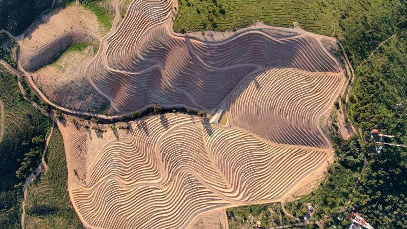 «Sempre acreditei muito no Alentejo, uma região vinícola de enorme tipicidade e a única que reúne quase todos os tipos de solos existentes em Portugal», afirma Luisa Amorim. Um desses exemplos de diversidade é a Serra do Mendro, que separa o Alto do Baixo Alentejo e atinge o seu ponto mais alto na Herdade Aldeia de Cima, a 404 metros de altitude. Pertencente à unidade geomorfológica mais antiga da Península Ibérica e detentora de uma paisagem extraordinária, foi aqui que Luisa Amorim identificou um enorme potencial para plantar uma vinha em altitude, em patamares tradicionais de um bardo, em terras de xisto no Maciço Antigo Ibérico.