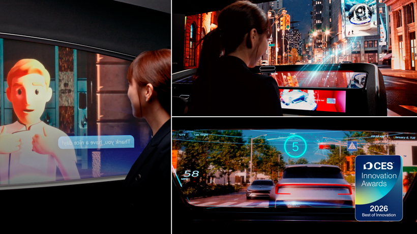 A exibição inclui três soluções experienciais principais: a Mobility Display Solution, que transforma o para-brisas num interface inteligente; a Automotive Vision Solution, que reforça a segurança e fornece informações contextuais ao condutor e ao passageiro da frente através de Vision AI; e a In-Vehicle Entertainment Solution, que disponibiliza recomendações de conteúdos personalizadas, multimédia baseada em memória e tradução em tempo real.