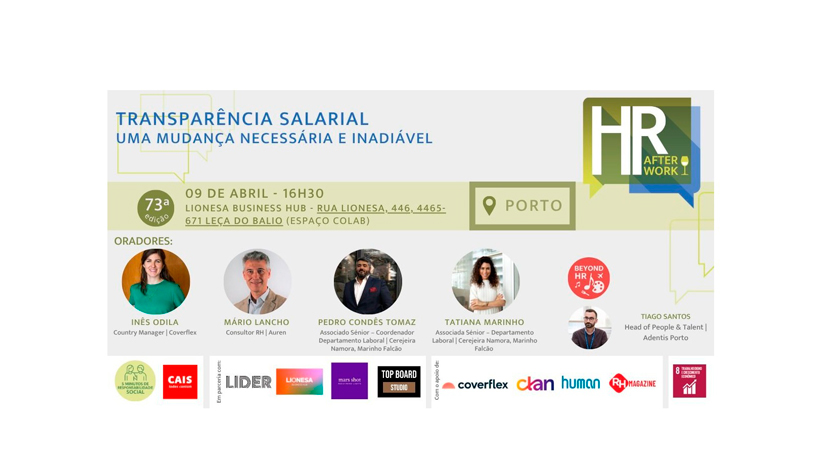 No próximo dia 9 de abril, a partir das 16H30, o Lionesa Business Hub (Leça do Balio, Porto) receberá a edição 73 do HR After Work. Trata-se de uma edição que procurará ser um ponto de viragem para repensar, sem filtros, como se quer construir relações de trabalho mais claras, mais justas e verdadeiramente preparadas para o futuro. Isto num contexto onde a equidade, a confiança e a retenção de talento são cada vez mais estratégicas, onde falar abertamente sobre salários deixou de ser opcional, tornando‑se uma exigência real e inevitável. E as empresas que insistem em obscurecer práticas, dados ou decisões estão simplesmente a ficar para trás, assinala a equipa do HR Afterwork.