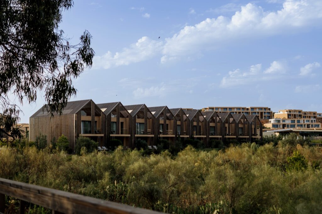 O resort estende-se por cerca de 86 hectares de terreno, com um índice de construção de 8,7%. Os seus cerca de 70 hectares de espaços verdes incluem um parque verde de recreio e de lazer com mais de 42 hectares e uma reserva natural em frente do mar com 24 hectares, áreas de interpretação ambiental, conservação e promoção do habitat natural, um pomar e uma horta de produtos locais e um picadeiro com cavalos para passeios dentro do empreendimento.
