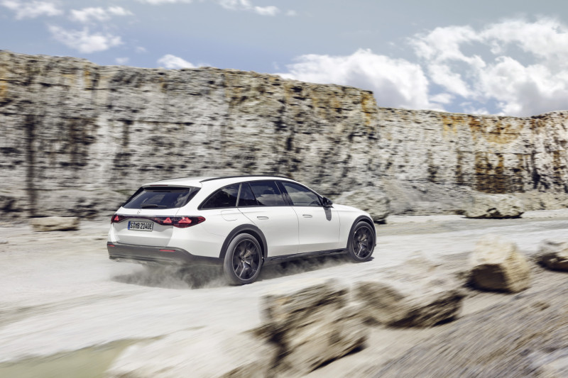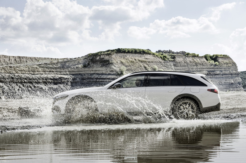 Após as versões Limousine e Station, a versão All-Terrain da Mercedes-Benz é agora lançada como terceiro membro da família do Classe E. Com o sistema de tração integral 4MATIC de série e a maior distância ao solo – até 46 milímetros (mm) superior comparativamente à versão Station, mesmo quando carregado totalmente –, o novo Classe E All-Terrain está idealmente equipado para ser conduzido fora de estrada em terrenos ligeiramente irregulares, como estradas rurais não pavimentadas. A suspensão pneumática AIRMATIC e um programa de condução off-road também de série. Outros equipamentos práticos para a condução fora de estrada incluem o display off-road e o capot transparente em combinação com a câmara de 360 graus, que permite ao display central mostrar uma vista virtual da estrada imediatamente à frente do veículo. Isto permite ao condutor visualizar obstáculos de forma fácil e antecipada, como pedras de grandes dimensões ou irregularidades no solo.